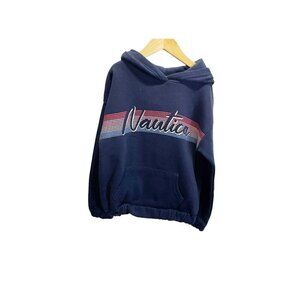 Nautica Girls Fleece Logo Navy. Blue Pull Over. Hoodie M 8-10