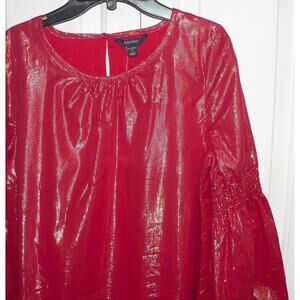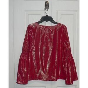 Nautica Girls Smocked Bell Sleeve Blouse Cherry Red Gold Metallic Stripe XL $40