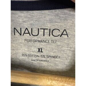 This Nautica long-sleeve performance tee combines style and functionality. The cotton-spandex blend offers comfort and flexibility, suitable for casual or active wear.