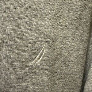 Experience the perfect blend of comfort and style with this Nautica gray zip-up sweater. Crafted from a soft cotton-blend material, it features a ribbed collar and cuffs for a classic look. The clean stitching and uniform color make it a versatile addition to any wardrobe.