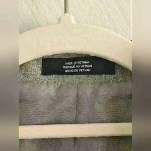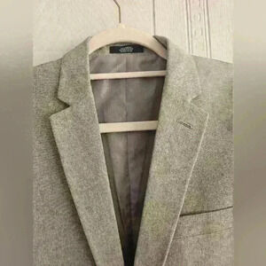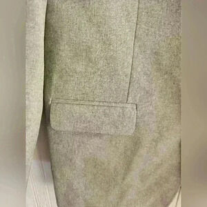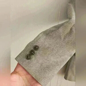 Pristine light gray 100% polyester fully lined blazer, 3 button closure, notch lapel, faux front pocket, faux breast pocket, actual inner breast pocket in excellent used condition. Looks like it runs small, please check measurements.