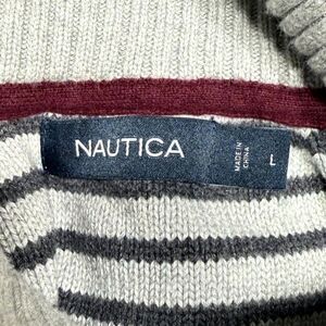 Nautica Gray Striped Cowl Neck Sweater 100% Cotton Mens Size L