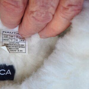 Nautica Gray Suede Off White Faux Shearling Scuffs size 7-8