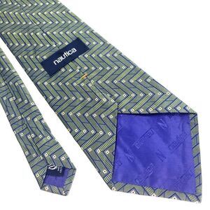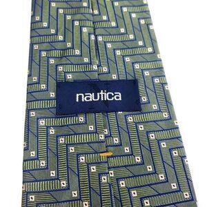 Nautica Green Silk Tie Woven Geometric Wide