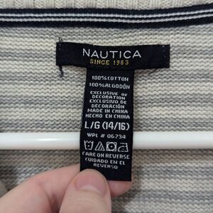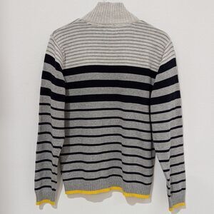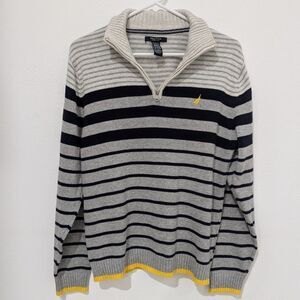 Nautica Grey Blue Yellow Striped 100% Cotton Turtleneck 1/4 Zip Sweater Large