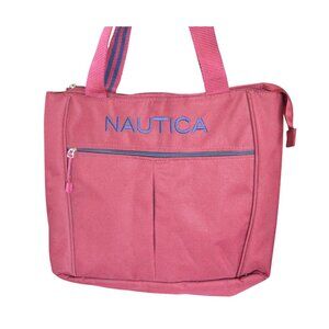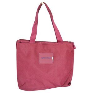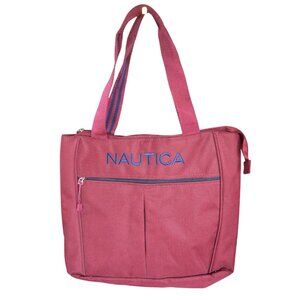 Nautica Helmsman Boat Classic Dark Red Navy Blue Canvas Travel Tote Bag Luggage
