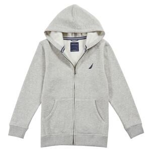 Nautica Full Zip Hoodie Sweatshirt Light Gray Jacket Boys Logo on Front Medium 5/6