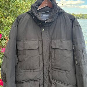 Nautica Insulated Winter Parka with Hood & 4 Pockets, True Black Color Men's XXL