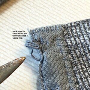 Flaws: One eye-hook is sewn-in crooked (see images)