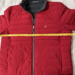 Nautica Jacket Men Size XXL Red Gray Puffer Quilted Reversible Stretch Ski Warm