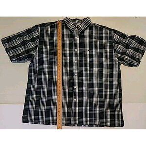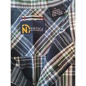 Nautica Jeans Co Men Blue Green Plaid Shirt Short Sleeve Pocket Button Up Sz XL