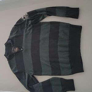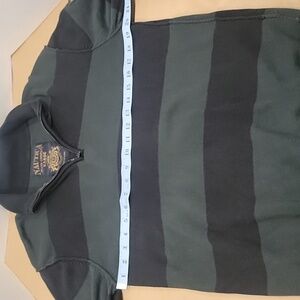 Nautica Jeans Co Size L 1/4 Zip Green Blue Striped Sweater, NJCo Crest on Arm