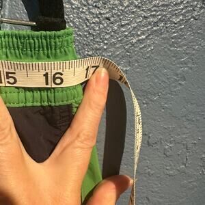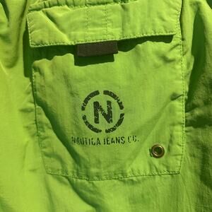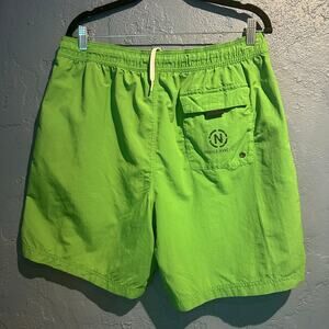 Nautica Jeans Co. swimming trunks in size large. These stylish trunks are perfect for a day at the beach or pool. The lime green with navy and white accents are great for summer! There are some slight streaks on the front as shown in pics but otherwise in excellent condition. Priced accordingly.