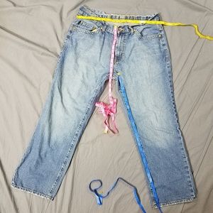 Nautica Jeans Co. blue faded denim jeans. yellow detailing. 34x30. no holes or stains. photos show measurements and details. nice classic pair of jeans