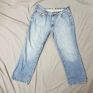 Nautica Jeans Co blue faded denim jeans yellow detailing 34x30