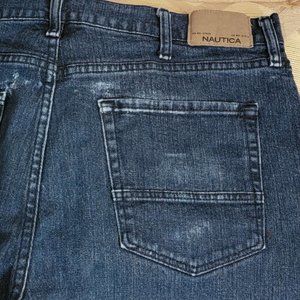 Nautica Jeans Mens 38x30* Blue Dark Wash Relaxed Straight Fit Distressed