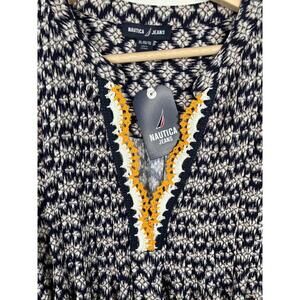 Nautica Jeans Siesta Key Beach Yellow White Flutter sleeves Patterned fabric Tie waist Ruffle hem Short sleeve printed dress Dress Extra Large Brighten up your wardrobe with this Nautica Jeans Siesta Key Beach dress. The patterned fabric and flutter sleeves add playful flair while the tie waist flatters your figure. Finished with yellow and white vneck trim for a standout touch. Condition: New condition. New with tags Size: Extra Large Features: Flutter sleeves, Patterned fabric, Tie waist, Ruffle hem, Vneck with yellow and white trim Brand: Nautica Jeans Type: Dress Style: Short sleeve printed dress Color: Yellow White Material: 100% Viscose Measurements: approximately Sleeve length 4.5" Chest width 22.5" Waist width 25" Total length 40" Smoke Free Environment Tags: Nautica, Dress, XL, Flutter, Patterned, Tie, Ruffle, Beach, Summer, Womens
