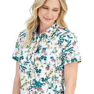 Nautica Jeans Women’s Floral-Print Short-Sleeve Cotton Camp Shirt, Multicolor, M