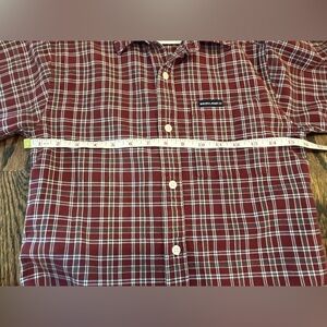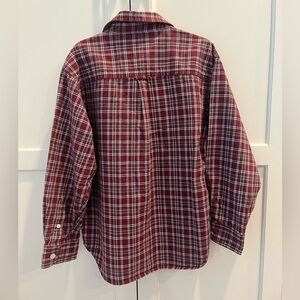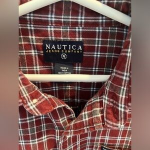 Nautica Jeans boys button up long sleeve plaid shirt size M red cotton