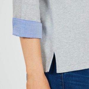 Chambray taping at side slits, back of neck and sleeve cuffs
