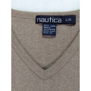 Nautica Large Tan Navtech Performance Classic-Fit Soft VNeck Cotton Sweater VTG