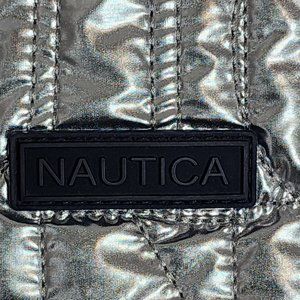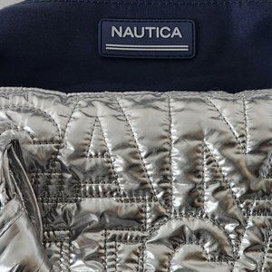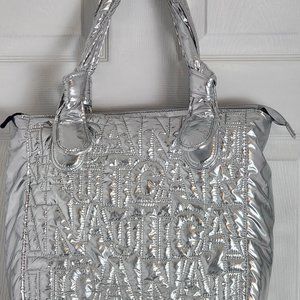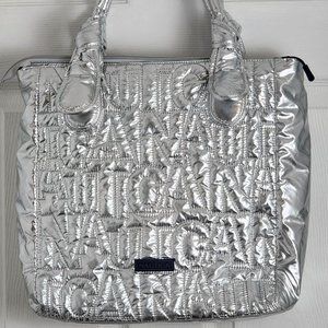 Leah Quilted Tote Silver Metallic Nylon W 15" X H 13.5" X D 13"