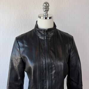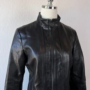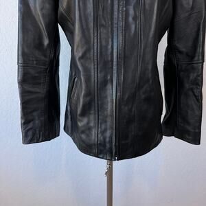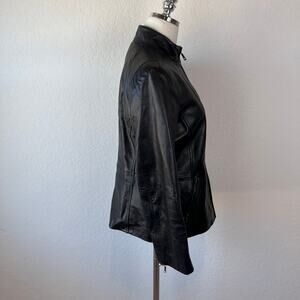 Nautica Leather Zip Up Jacket size Womens Medium Black Moto Biker