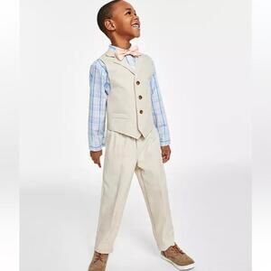 Nautica Little Boys 3-Pc. Textured Linen Look Vest Set, dress shirt pants
