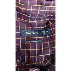 Nautica Long Sleeve Button Down Mens Dress Up Shirt Traveler Twill Size M