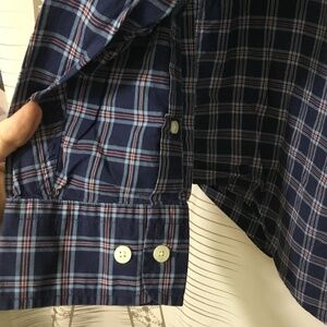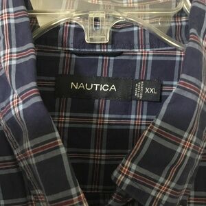 Nautica Long Sleeve Button Up Navy Blue Plaid Dress Shirt Men Size XXL EUC
