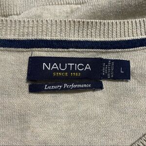 Nautica Luxury Performance Mens Large Beige V Neck Sweater Vest in good used condition. No stains, tears or rips.