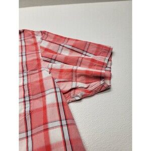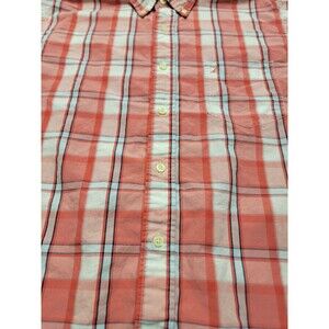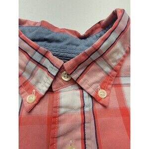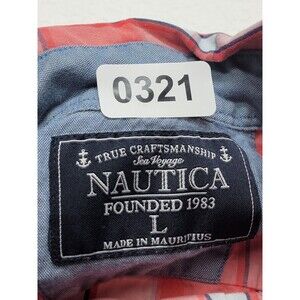 Nautica Men Red Blue Plaid Classic-Fit Short-Sleeve Button-up Oxford Shirt Sz L