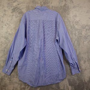 Nautica Men Shirt Button Down Long Sleeve 100% Cotton Striped Blue 16.5