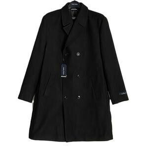 Nautica Men's 44 Long Overcoat Double-Breasted Wool Blend Lined Solid Black NEW