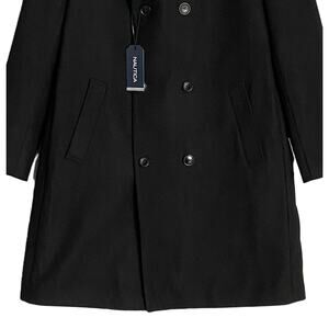This listing is for a new with tags Nautica Men's 44 Long Overcoat, Style ID Brass TN0000, in Solid Black. Wool Blend, Double-Breasted, Fully Lined, 2 Side Pockets, 3 Internal Pockets, Single Vent. 52% Wool. 41% Polyester, 4% Acrylic, 2% Rayon, 1% Nylon, Dry Clean Only. MSRP $395