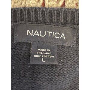 Nautica Mens Argyle Sweater L Black Blue Gray 100% Cotton Classic Knit Long Slee