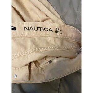 Nautica Mens Beige NEW Casual Flat-Front Pants 42W Medium Cotton Blend Relaxed F