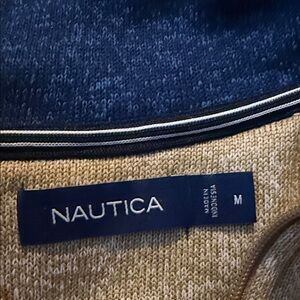 Classic zip-up sweater by Nautica. Soft beige fabric. Ideal for casual wear.