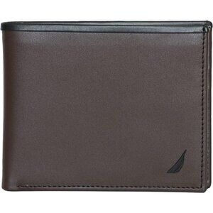 Nautica Men's Bifold Leather Wallet Black Brown RFID Blocking ID Window Card