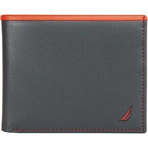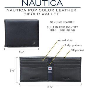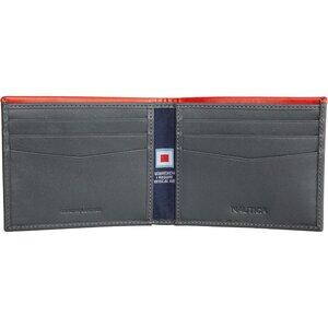 Nautica Men's Bifold Leather Wallet RFID Blocking Navy Red ID Window Card Slots