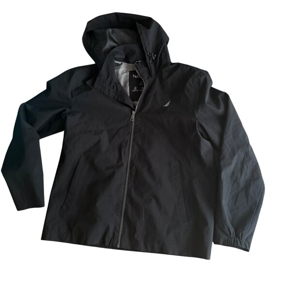Nautica Mens Black Hooded Water-Resistant Jacket With Full-Zip Closure Size M/M