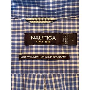 Nautica Men’s Blue Checkered Dress Shirt (Size L)