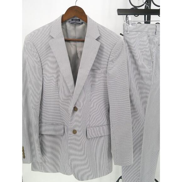 Nautica Mens Blue Pin Striped Modern Fit Single Breasted 2-Piece Suit 38R 34x30