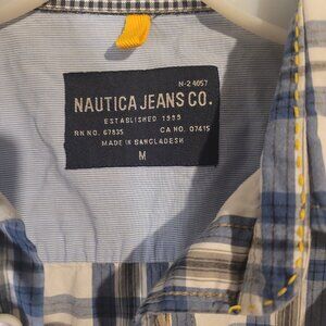 Nautica Men's Blue Plaid Short Sleeve Button Down Shirt Size M