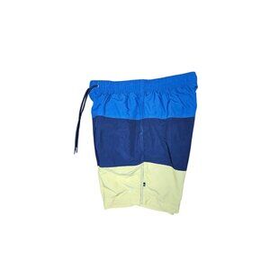 Nautica men's yellow and blue color blocked swim trunks in a size medium.