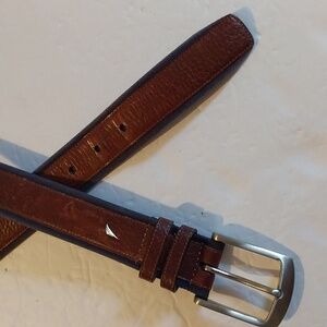 Nautica Mens Brown leather / dark Navy Dress Belt Dual color silver tone Sz.38