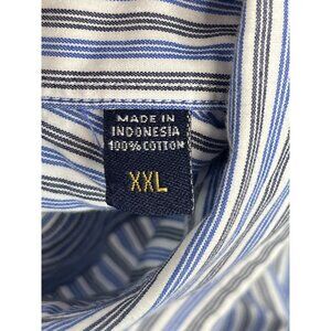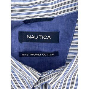 Nautica Men's Button Down Shirt XXL Blue Black White Striped 100% Cotton