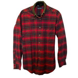 Nautica Men's Button Down Cotton Long Sleeve Shirt Red/Green/Blue Plaid Medium
