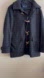 Stylish and warm wool blend jacket. Features toggle closures and a cozy hood. Ideal for cold weather.