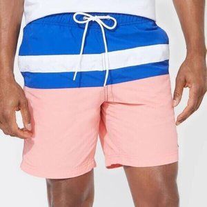 Nautica Men's Color blocked 8" Swim Trunks Neon coral pink Size S MSRP $60